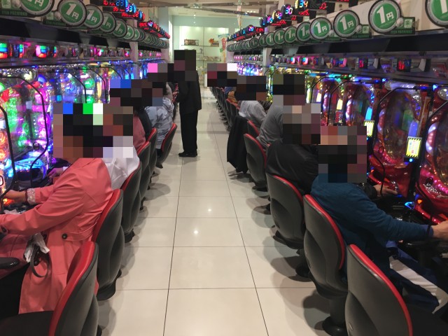 「ニューアイムジャグラーEXーKT」を中心とするジャグラーコーナーは中高年層の憩いの場となっており、シマの雰囲気は終始なごやかであった。
