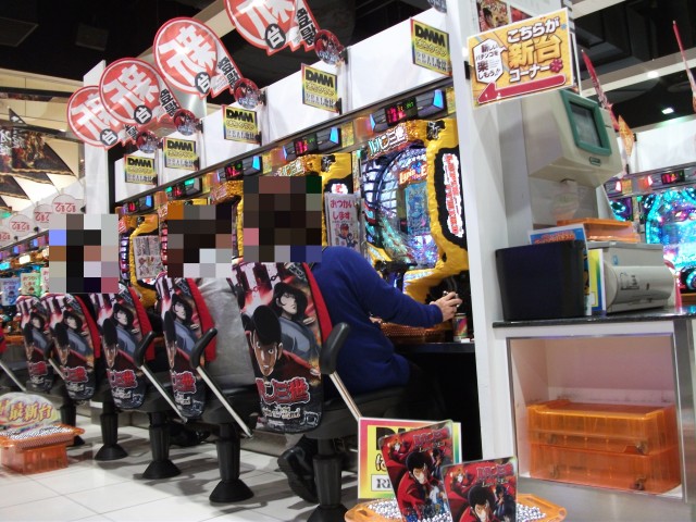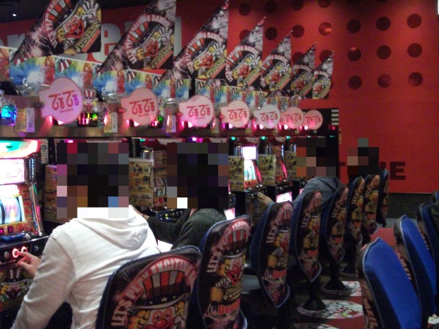 定番機種となりつつある「パチスロ北斗の拳 修羅の国篇」も人気で、遊技する若者たちの姿は真剣そのものであった。