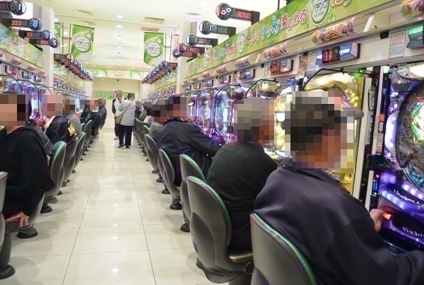 開店直後は1000円/47枚パチスロコーナーの人気が高く、「バジリスク~甲賀忍法帖~絆」や「パチスロ北斗の拳 修羅の国篇」に向かうプレイヤーが多かった。