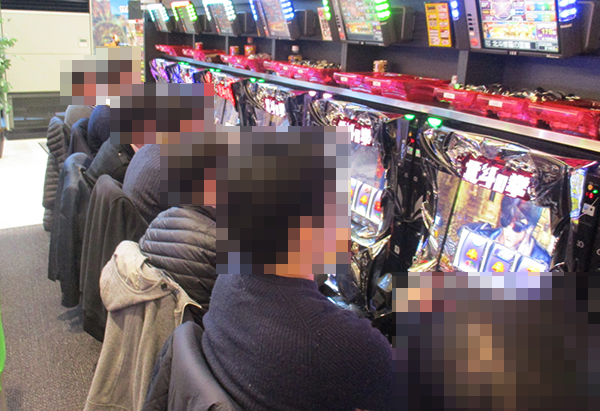 夕方の20円パチスロをみると、「パチスロ北斗の拳 修羅の国篇」が大きく盛り上がっていた。