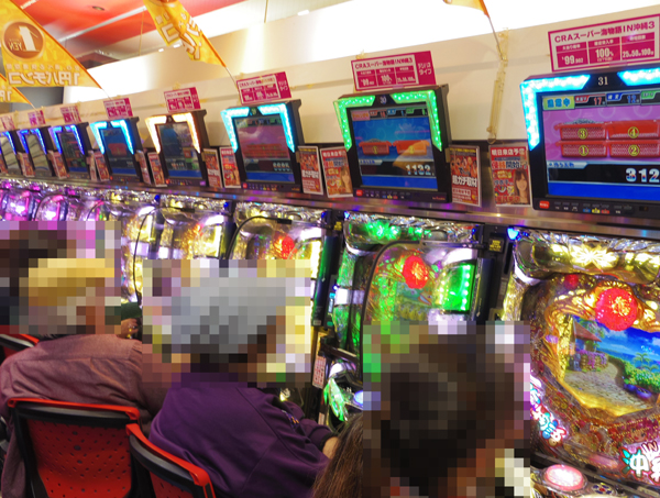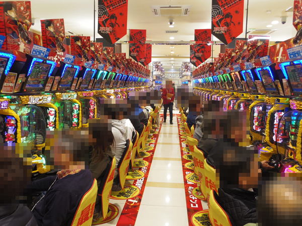 ほかにも「ぱちんこCR真・北斗無双」「CR牙狼 魔戒ノ花」「CRスーパー海物語IN沖縄4」など様々な機種が活気づいており、プレイヤーの楽しげな表情が印象に残っている。