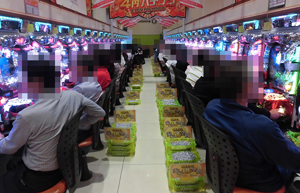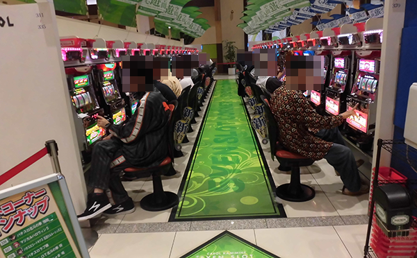 14時頃の4円パチンコのなかで、大きな盛り上がりをみせていたのは海物語シリーズ。機種の魅力を堪能しているプレイヤーのイキイキとした表情も印象に残っている。