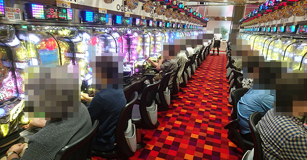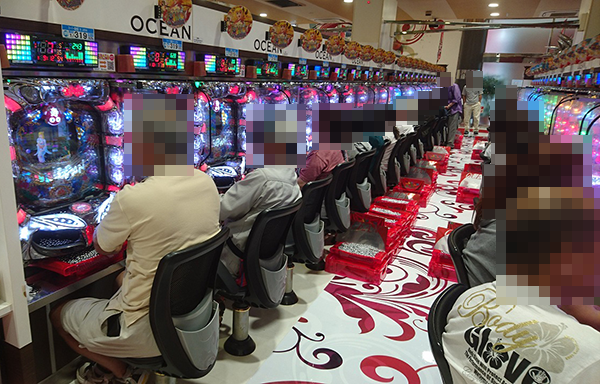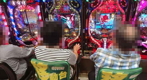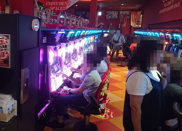 14時を過ぎた頃の4円パチンコでは、海物語シリーズが盛況。なかでも、「CRスーパー海物語IN JAPAN」に機種の性能を引き出しているような姿が多く、注目を集めていた。