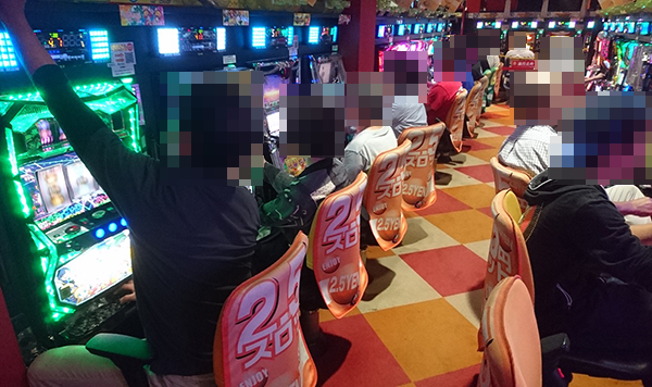 5円パチスロと2.5円パチスロも活気づいており、笑顔の数が多い。