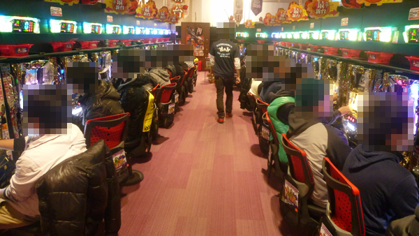 開店直後は20円パチスロに多くのプレイヤーが向かっており、なかでも「パチスロ アラジンAⅡ」は即満席と最も注目されていた。「SLOT魔法少女まどか☆マギカ」や「パチスロ黄門ちゃま 喝」などもプレイヤーの姿は多い。