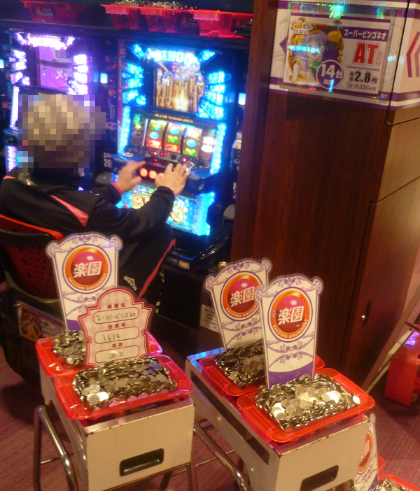 夕方頃になると、20円パチスロの「スーパービンゴネオ」に最高のパフォーマンスを披露する台を発見。機種の性能を存分に引き出したプレイヤーの満足そうな表情はとても印象的であった。