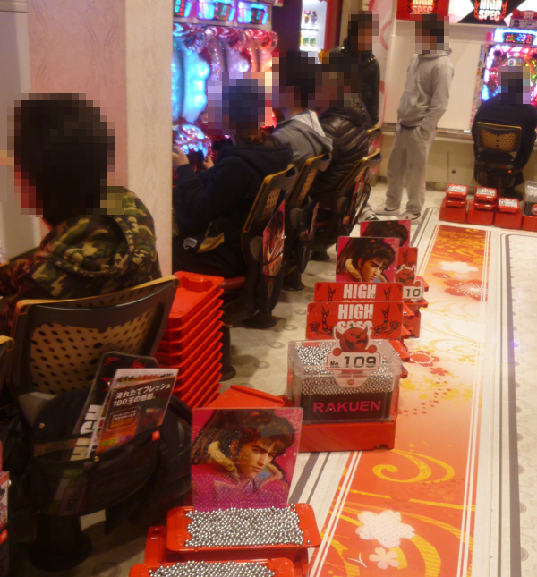 4円パチンコでは「CR真・花の慶次」や「CR牙狼 金色になれ」などMAXタイプに好調な台が多く、順調に大当りを重ねているプレイヤーも目についた。