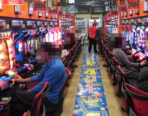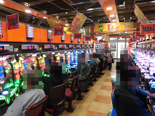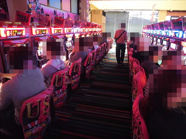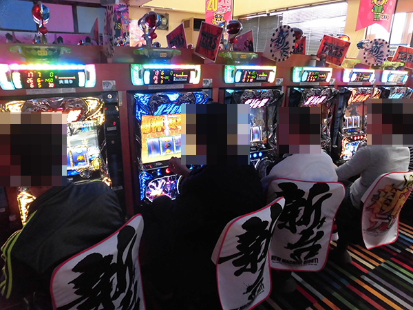 4円パチンコでにぎわっていたのが「ぱちんこCR真・北斗無双」。プレイヤーたちの明るい表情が、満足度の高さをあらわしているようであった。