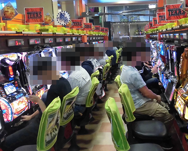 「パチスロBLOOD+ 二人の女王」や「パチスロ化物語」などに、華麗なパフォーマンスを披露しているプレイヤーがみられ、シマ全体が活気に包まれているようであった。
