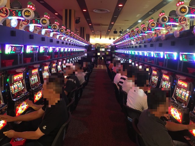 定番のジャグラーシリーズも大人気。とくに『ニューアイムジャグラーEX』などは空き台もなく、通路には空き台待ちと思わしきプレイヤーの姿もみかけた。