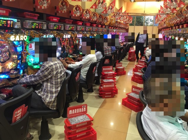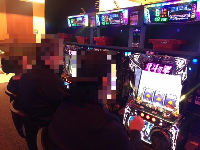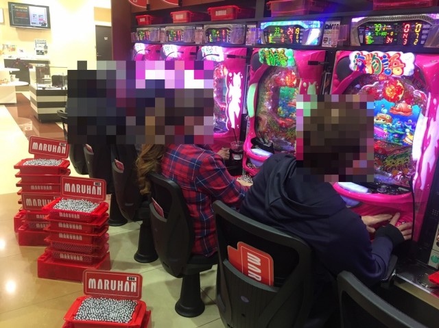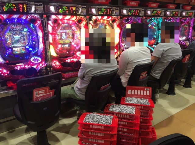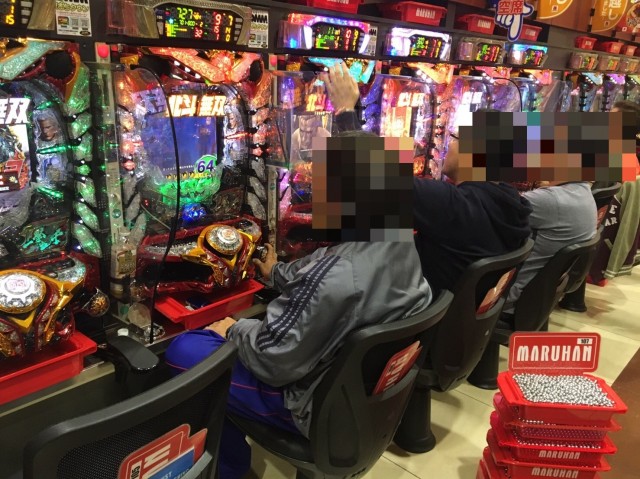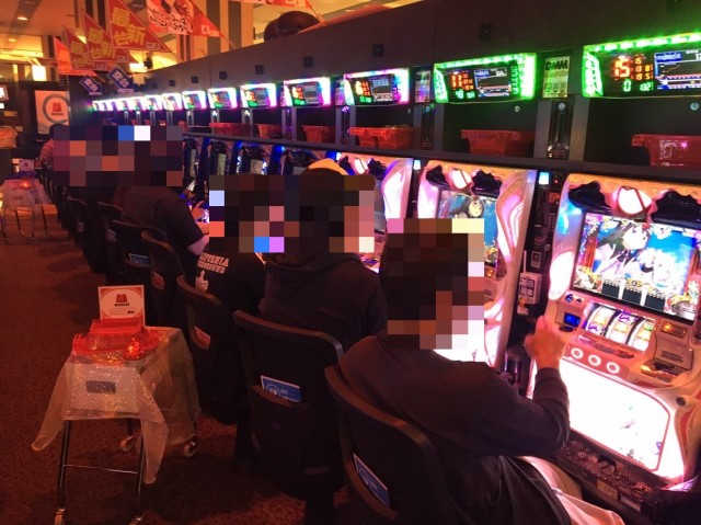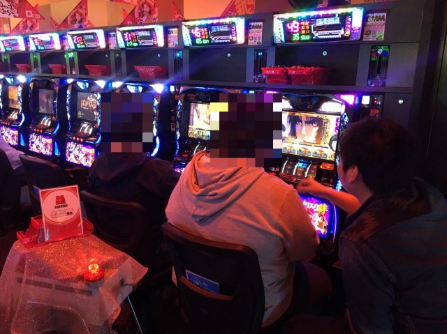 まずはパチンココーナーをのぞいてみると、「CR真・花の慶次」にひと際大きな注目を集めるプレイヤーの姿を確認できた。