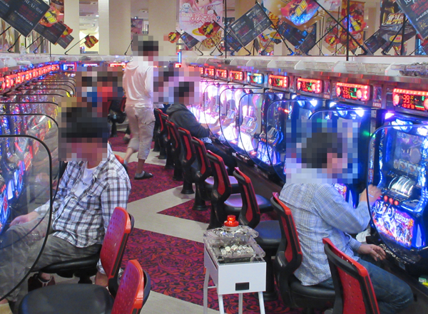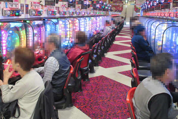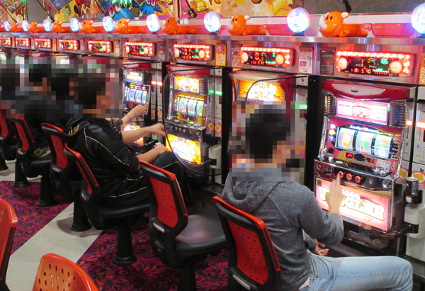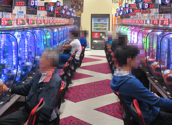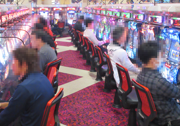 ジャグラーシリーズをはじめとしたボーナスタイプのコーナーは、年配層プレイヤーの姿も多く見られ和やかな雰囲気。ただし、機種ポテンシャルを最大限引き出そうと、遊技に集中しているプレイヤーも見られた。
