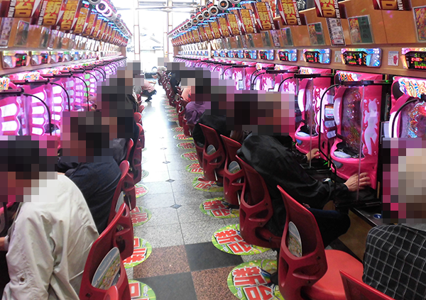 分煙シャッターや計数機が全台に設置されているパチンコの雰囲気も明るい。