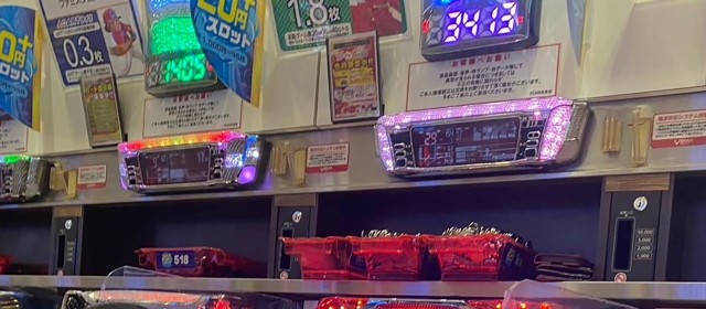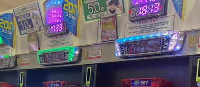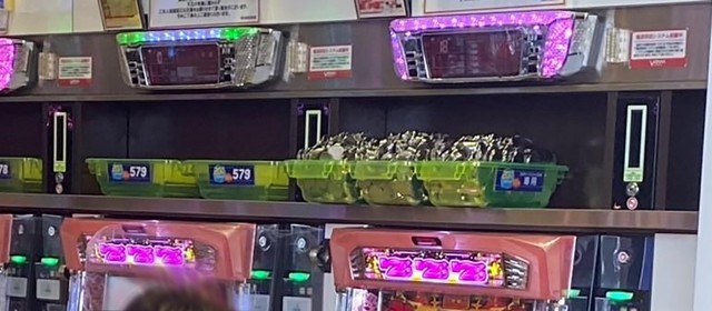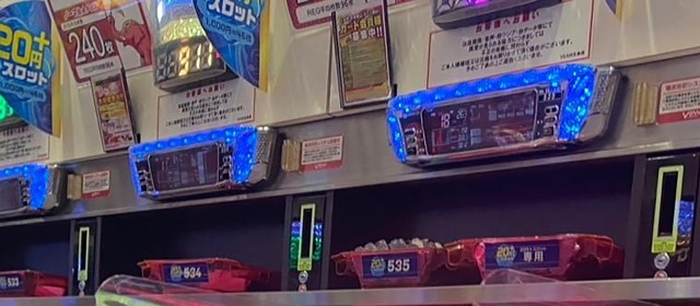 6.5号機にも好調台が多数。 『パチスロ甲鉄城のカバネリ』5台は横並びで頭上にメダルが詰まった箱が目立ち、1台設置のバラエティーコーナーでも勝負になる台がいくつも数えることができた。