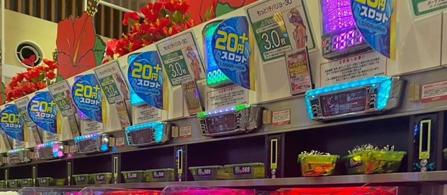 ドル箱の多さが光ったのが沖スロコーナー。『ハナハナホウオウ~天翔~-30』『沖ドキ!2-30』『もっと!チバリヨ-30』『沖ドキ!GOLD-30』と、設置の多い少ないを問わず複数のラインナップにチャンスが潜んでいた。