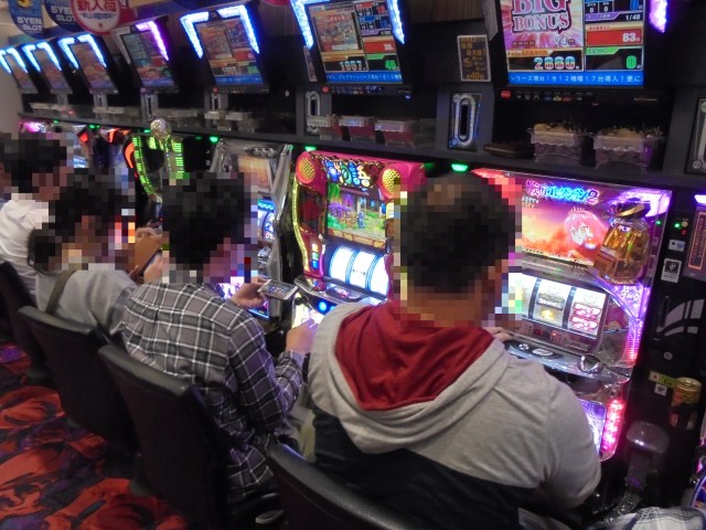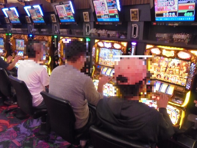 5円スロットコーナーは、定番機種を中心に幅広いラインアップで構成。老若男女を問わず多数のプレイヤーが楽しんでいた。