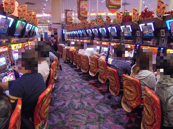 15時頃の店内の様子をうかがってみると、20円スロットコーナーでは、「パチスロ北斗の拳 修羅の国篇」の盛況ぶりが目に飛び込んできた。プレイヤーの大半が納得の表情。それを見ると、こちらもその盛況ぶりに納得といったところであった。