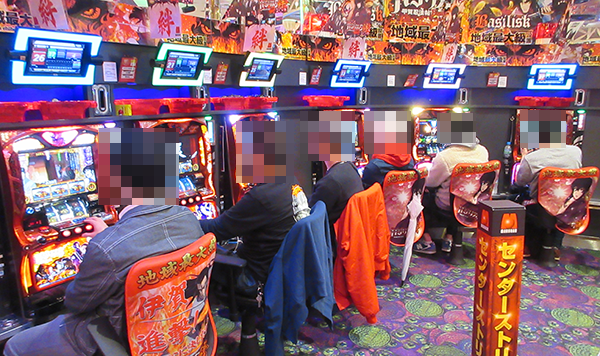 「パチスロ北斗の拳 修羅の国篇」や「アナザーゴッドハーデス」など、さまざまな機種がにぎわいをみせていた。
