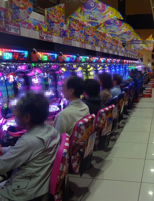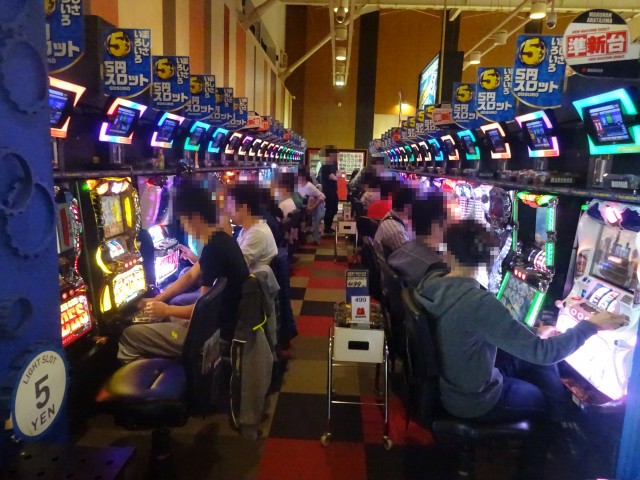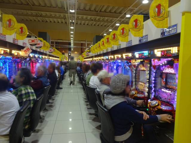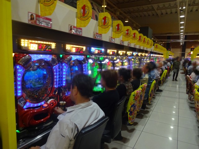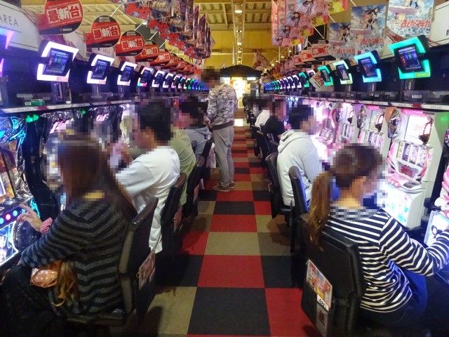 こちらも4円パチンコと同様に、甘デジタイプ「CRA大海物語3Withアグネス・ラム」を筆頭とした海物語シリーズが大人気だった。見渡しても空き台が無いほど、シマ一帯はプレイヤーたちでにぎわいをみせていた。