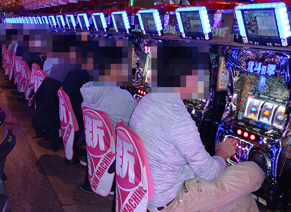 また、10円パチスロや5円パチスロでも、多数のプレイヤーが笑みを浮かべて遊技を楽しんでいた。
