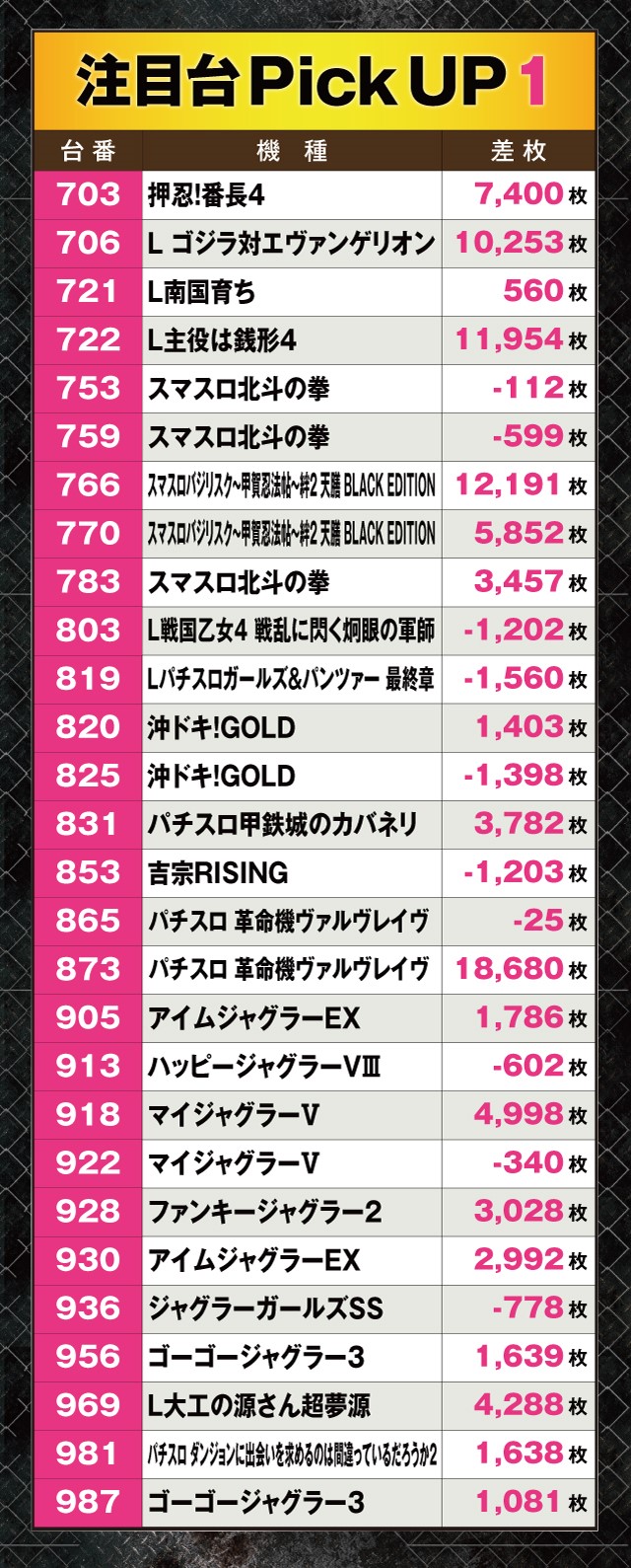 さらに最新台の『押忍!番長4』は+7,400枚と、こちらも理想的な展開を迎えていた。