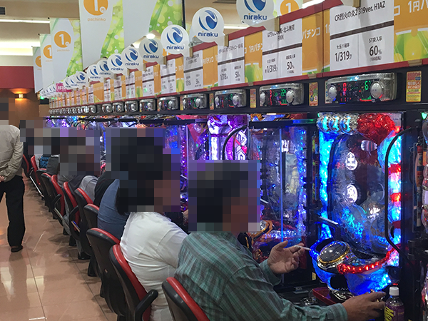 1円パチンコも、大勢のプレイヤーでにぎわっていた。