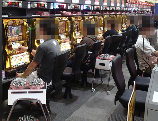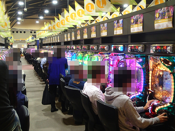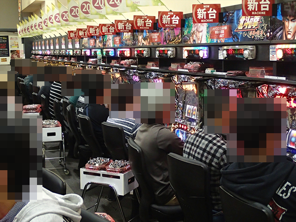 夕方ごろのパチスロで、ひときわ盛り上がっていたのが新台の「パチスロ北斗の拳 修羅の国篇」と「ミリオンゴッド-神々の凱旋-」。機種の性能を最大限まで引き出しているといったプレイヤーが多く、シマ全体が活気に包まれているようであった。