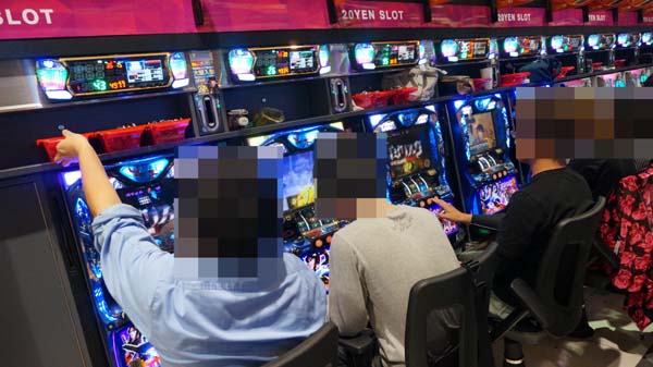 5円スロットコーナーでもたくさんの笑顔が広がっており、華やかなムード。