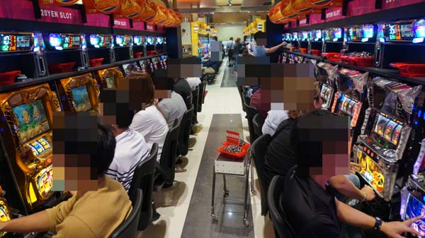 20円パチスロでは、「バジリスク~甲賀忍法帖~絆」が満席で、幸せな展開のプレイヤーを確認。