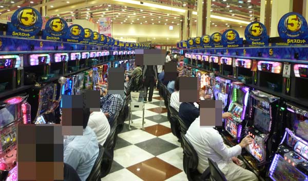5円スロットコーナーでは、バラエティ豊富な機種を揃え、全ての席が埋まる勢いをみせていた。