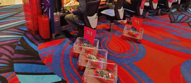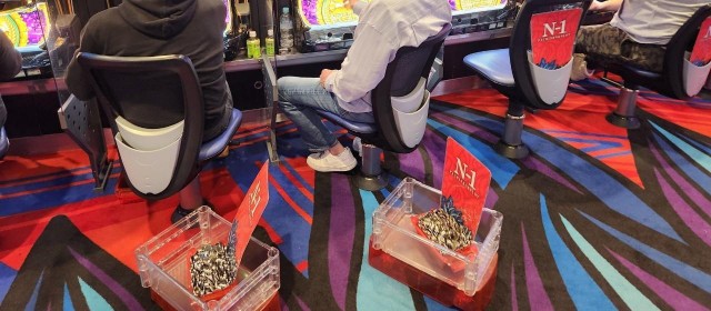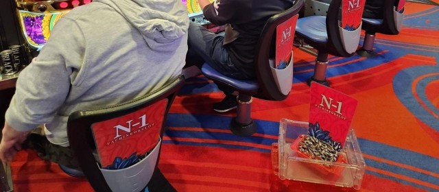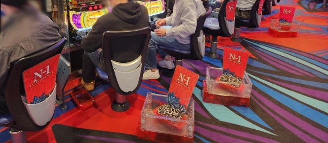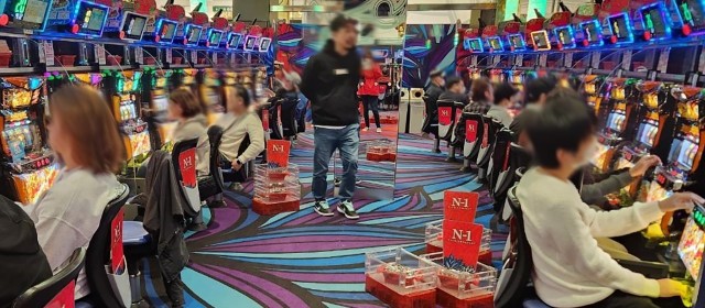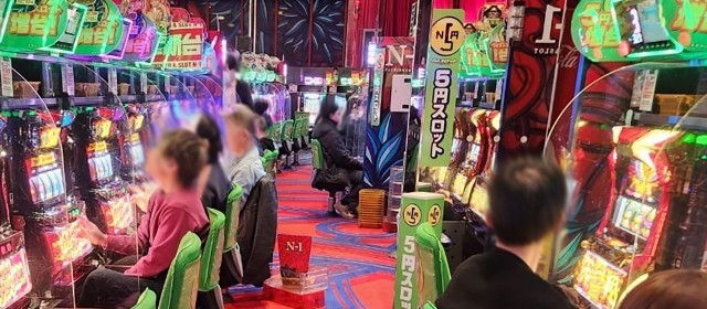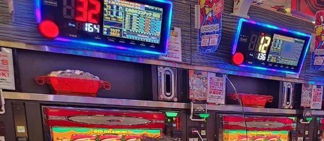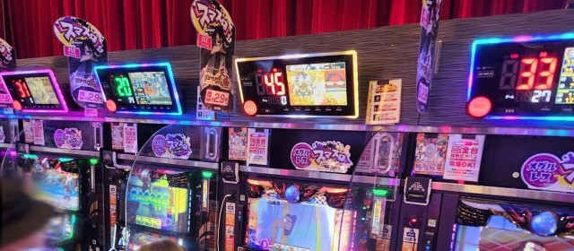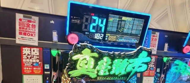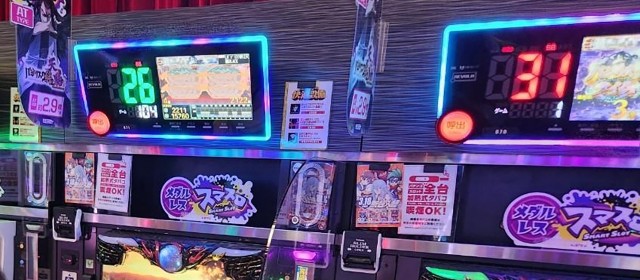 同店では設置数上位の『スマスロ北斗の拳』『スマスロバジリスク~甲賀忍法帖~絆2 天膳 BLACK EDITION』では頭上に赤い数字が列挙し、『パチスロ からくりサーカス』を始めとした少設置機種もドル箱表示が目立っていた。