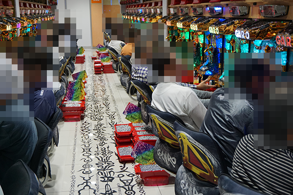 4円パチンコでは、「CR牙狼 魔戒ノ花」に広がる光景が華やか。機種の魅力を堪能しているようなプレイヤーも多かった。