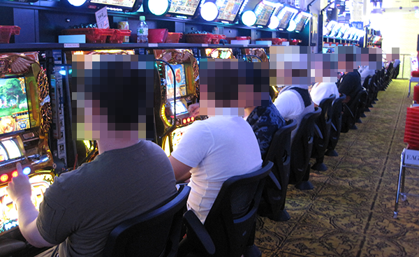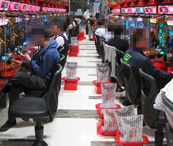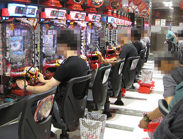 14時を過ぎた頃のパチスロでは、新台の「SLOT魔法少女まどか☆マギカ2」と「バジリスク~甲賀忍法帖~絆」が大盛り上がり。高い稼働率にくわえ、しあわせそうなプレイヤーをたくさんみることができた。