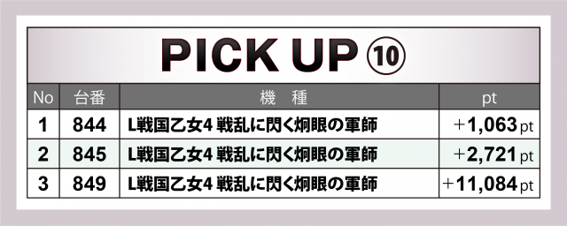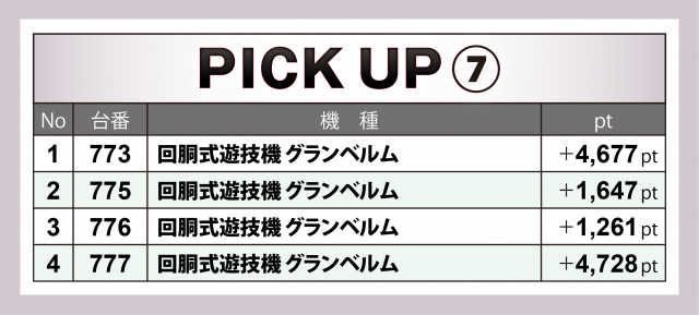 今回の調査では上に記した4つのマシン以外にも、10台以下の設置で4桁オーバーのプラスが3台以上という機種を複数カウントできた。ここから順次取り上げていこう。