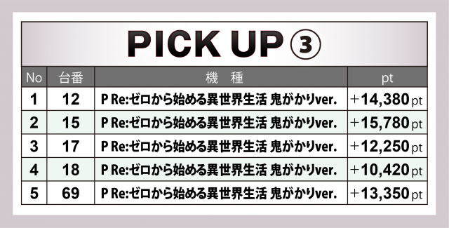 『P Re:ゼロから始める異世界生活 鬼がかりver.』21台ではプラスが12台と『Type レイ』に競り合う勝率だったが、飛び抜けた差玉が生じなかったのは惜しかった。