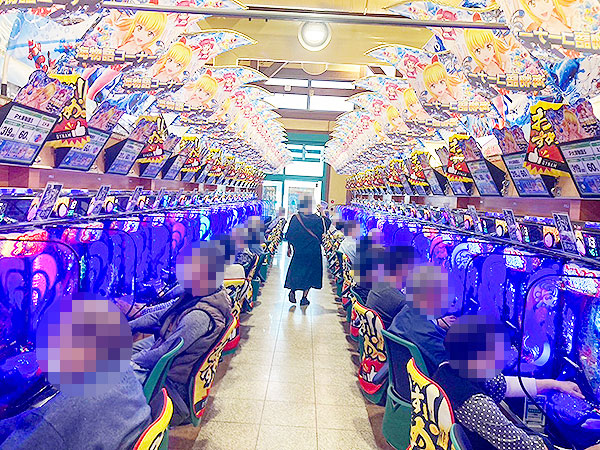 100円 98玉パチンコは全体的に高稼働で、空き台を探し出すのがやっとという状況。各人、好きな機種を見つけ出し、心から楽しんでいたように思う。