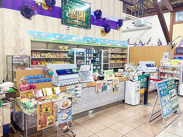 景品コーナーには食品類・お菓子・ドリンクなど色々なアイテムが用意されており、おみやげ選びも存分に楽しめることだろう。