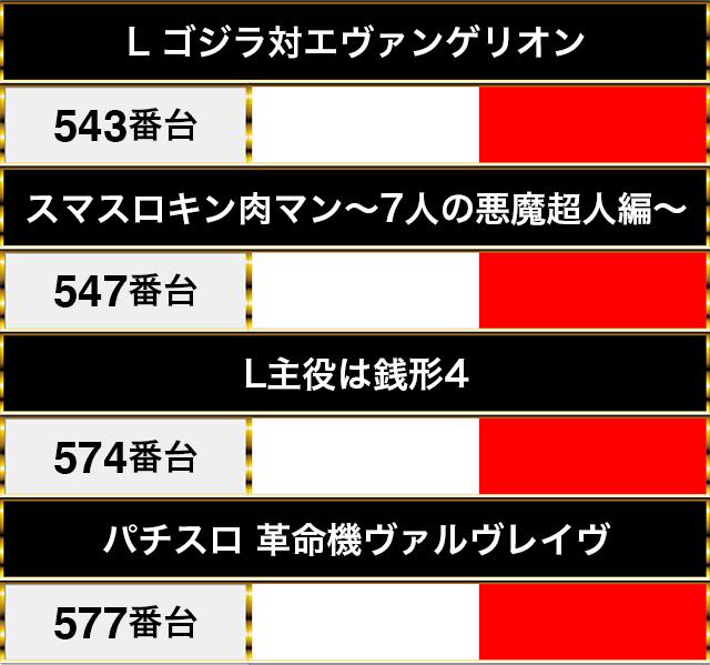 『L ゴジラ対エヴァンゲリオン』の543番台や『L主役は銭形4』の574番台もプラスptを記録した。