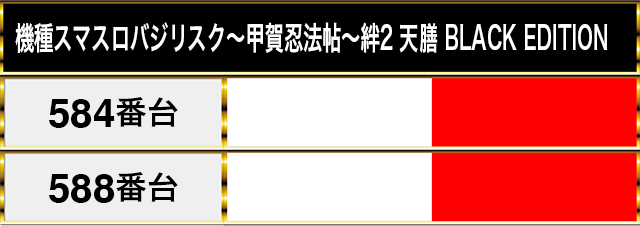 華やかなシーンは、『スマスロバジリスク~甲賀忍法帖~絆2 天膳 BLACK EDITION』の584番台と588番台でも確認している。