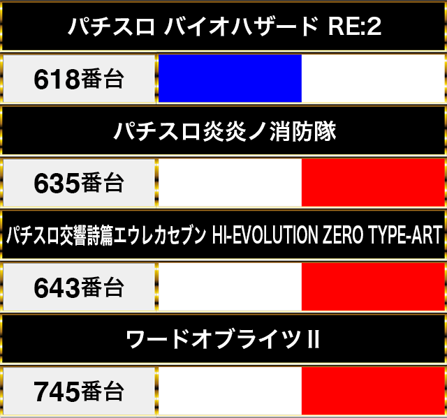 『パチスロ炎炎ノ消防隊』では、635番台がプラスptを記録。
