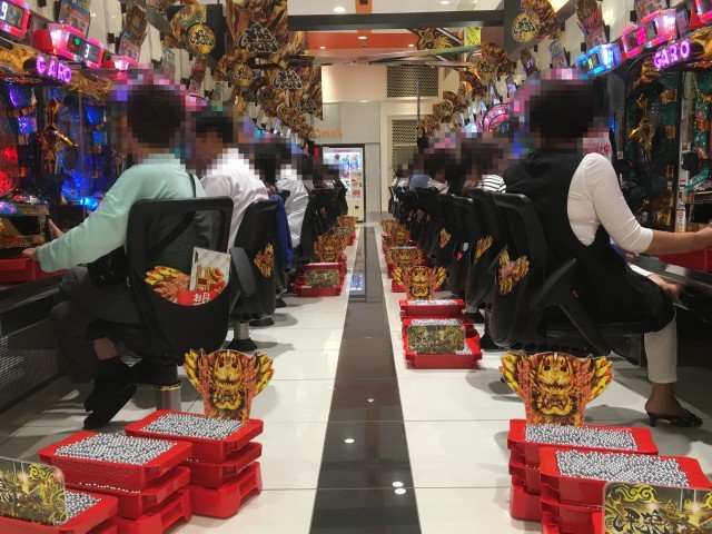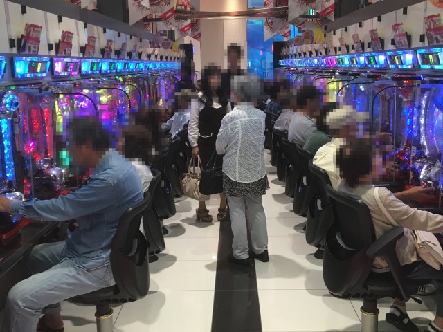 ゴージャスな店内にきらめくライト、パチンココーナーに整然と並ぶ「CR牙狼 魔戒ノ花」。遊技するプレイヤーの生き生きした姿が印象的だった。