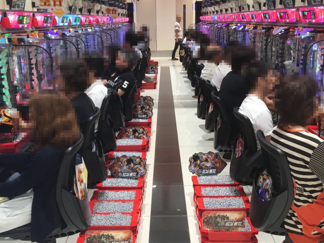 人気が人気を呼ぶ「CR真・北斗無双」。とにかく長いスパンでの人気が続き衰えない。時には台の空きを待ってプレイヤーの動きを気にする人が出る程だ。
