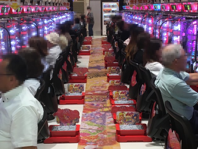 1円パチンココーナーでは、「CRAリング 呪い再びFPIZ」などのバラエティに富んだ機種を揃えている。どれを打とうか、目移りして定まらない感じのプレイヤーが多数。各々真剣に台を選んでいる様子だった。
