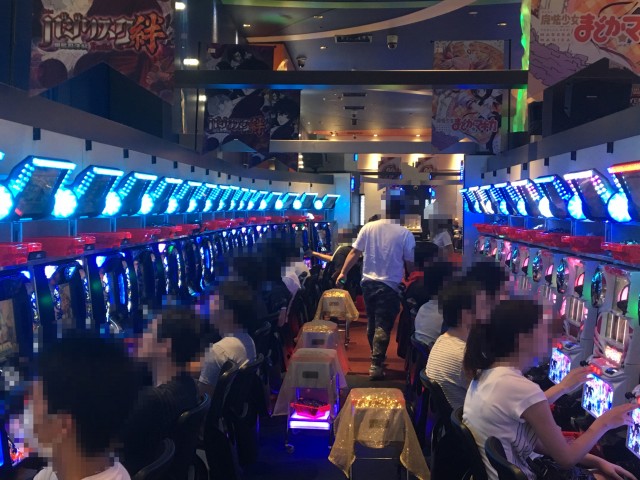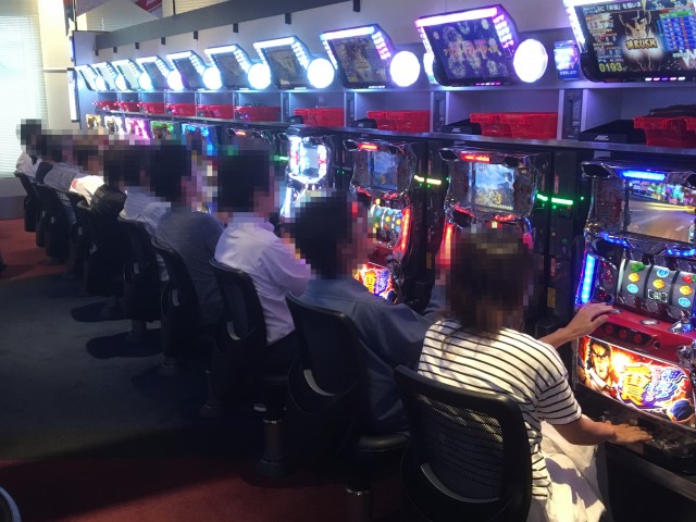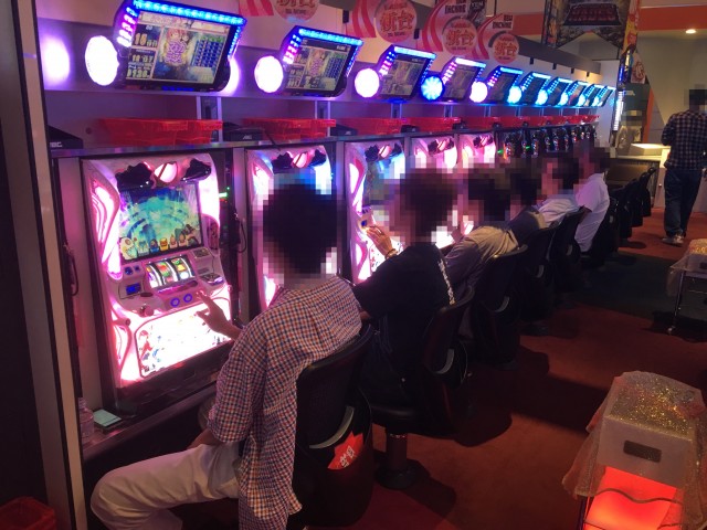 人気台「押忍!サラリーマン番長」も高稼動。楽しそうに遊技をおこなっているプレイヤーが多く、シマ全体が活気に満ちているように感じられた。