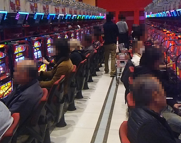 4円パチンコでは「CR真・花の慶次」や「CR牙狼 金色になれ」、「ぱちんこCR北斗の拳6 拳王」といった機種が大量の設置台数にも関わらず満席。プレイヤーの人数だけではなく好調な台も多数あり、ホール内で一番の盛況ぶりだった。