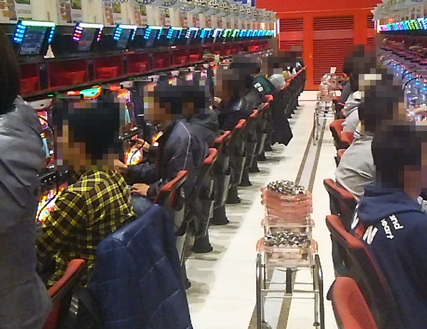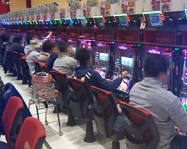 パチンコとパチスロを合わせて総台数880台(1月24日現在)を誇る「DAMZ竹尾インター店」には、さまざまな場所、さまざまな機種に楽しそうな表情をするプレイヤーがいた。