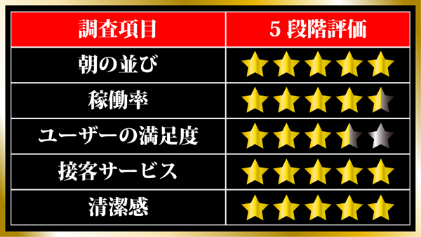 満足のいく遊技ができているのも理由のひとつだとは思うが、広々とした空間やキビキビと笑顔で接客するスタッフもプレイヤーを魅了していた要因だと思う。