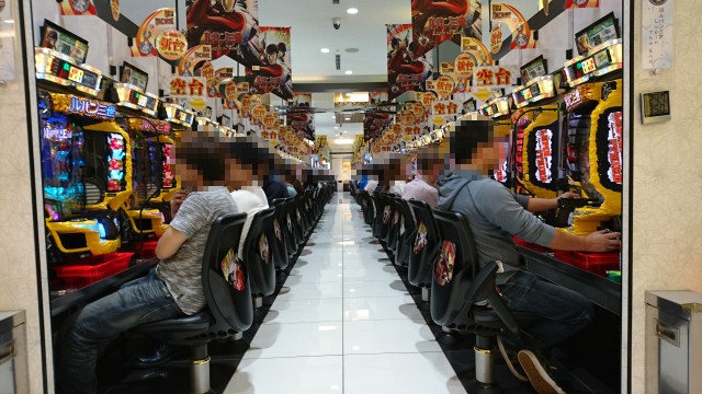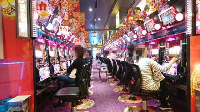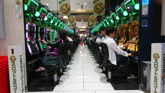 5円スロットのコーナーをのぞいてみると、「ミリオンゴッド-神々の凱旋-」から「戦国乙女2~深淵に輝く気高き将星~」などのバラエティ豊かな台が揃っていて、さまざまな機種を思い思いのパフォーマンスで楽しそうに向かう姿を確認できた。