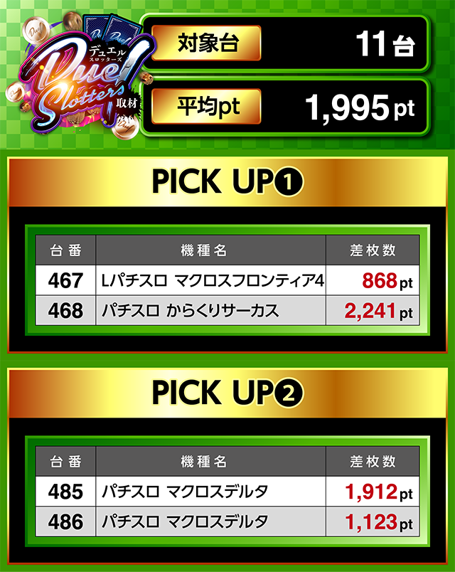 467番台の「Lパチスロ マクロスフロンティア4」と468番台の「パチスロ からくりサーカス」もプラスとなり、468番台は2,000pt超。