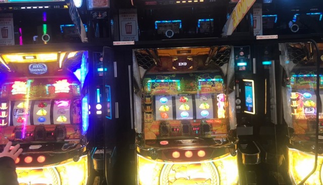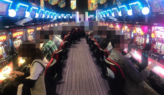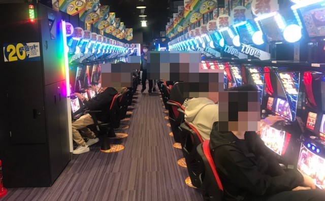 好調さを見せたのが末尾5番の台。+6,260枚の『スマスロバジリスク~甲賀忍法帖~絆2 天膳 BLACK EDITION』525番台、+4,090枚の『HEY!エリートサラリーマン鏡』425番台、+4,090枚の『スマスロモンキーターンV』415番台が目立っていた。